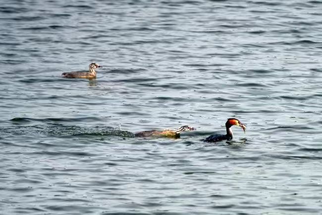 鳳頭䴙䴘捕捉到一條小魚 肖海清 攝